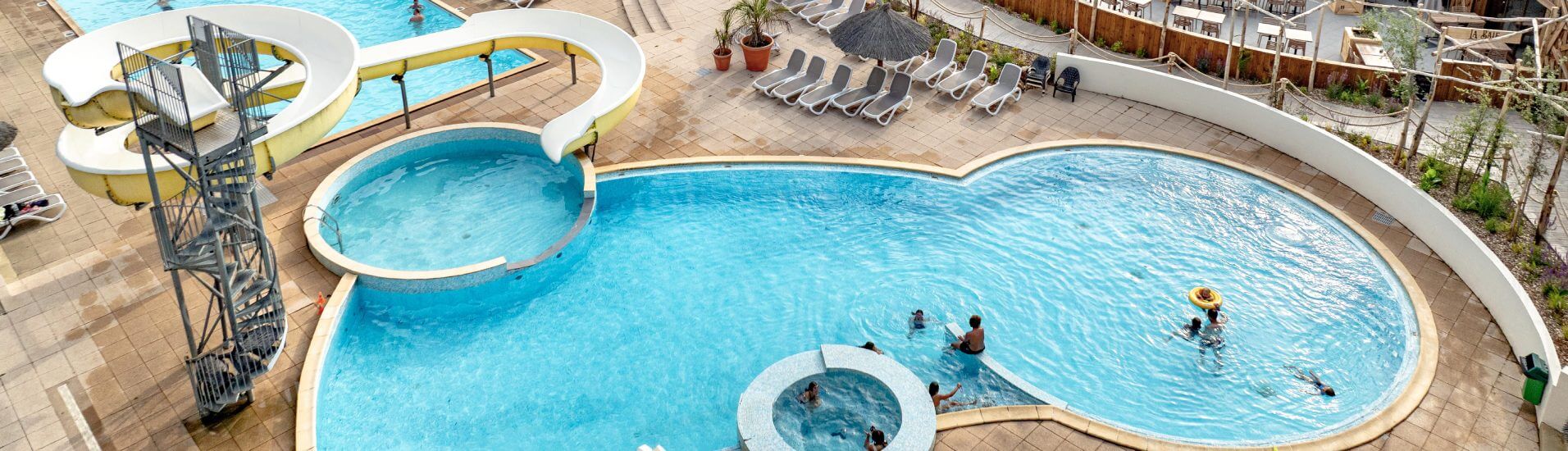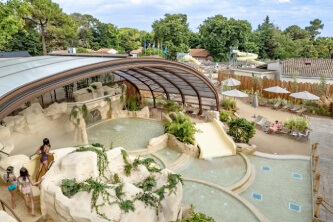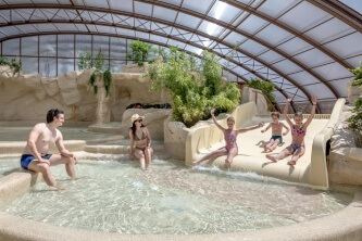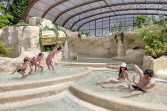 Son espace aquatique chauffé se divise en deux univers : La Source, un espace ludique pour les enfants avec toboggans, cascade et pataugeoire, et La Baie, un ensemble de piscines chauffées où toute la famille peut alterner baignade et moments de détente.