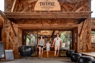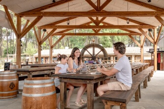 Côté restauration, La Taverne propose une cuisine conviviale, tandis que Le Comptoir rassemble une épicerie, une boulangerie et des produits locaux. Pour enrichir votre séjour, le camping propose clubs enfants, mini-ferme, Escape Game*, terrains de sport, mini-golf* et espace bien-être*.
